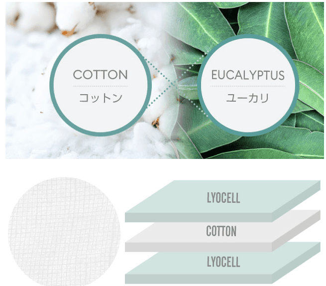 コットンと、ユーカリなどの木材から再生したリヨセル素材の3層構造で、通気性と浸透力*5を両立したシートマスク。優しい肌触りで乾燥ダメージ肌をいたわります。