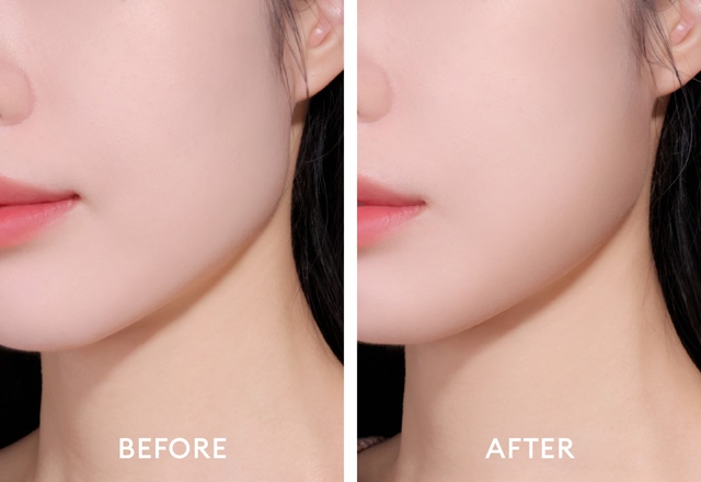 ブラシやパフに適量とり、フェイスラインや鼻筋などにのせてなじませます。