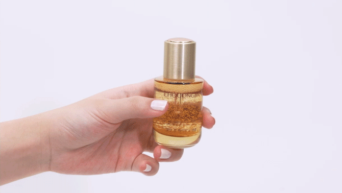 フタの上部を押しながら、美容液を手に適量押し出してください。