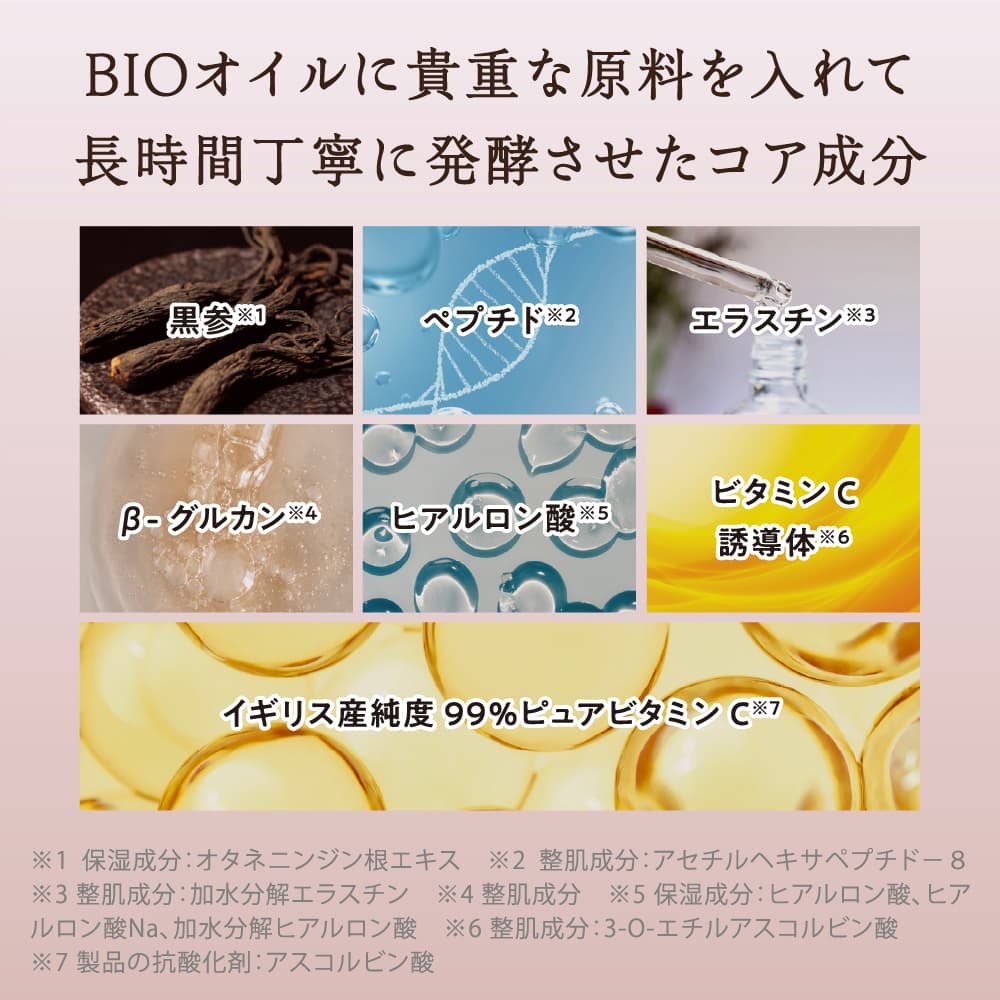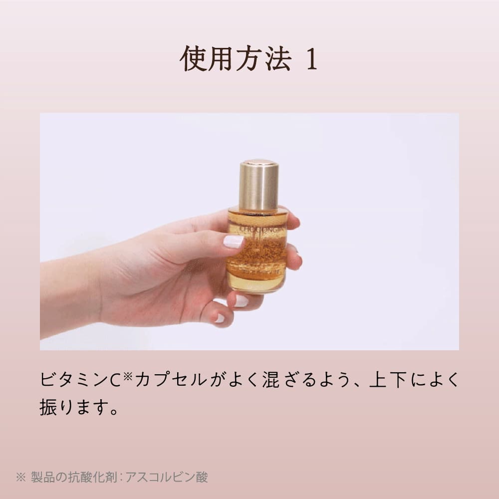 韓方コア成分「黒参*2」とピュアビタミンC*1を配合。ビタミンC*1カプセルを混ぜ合わせて使用することで、明るい肌印象へ導きます。
