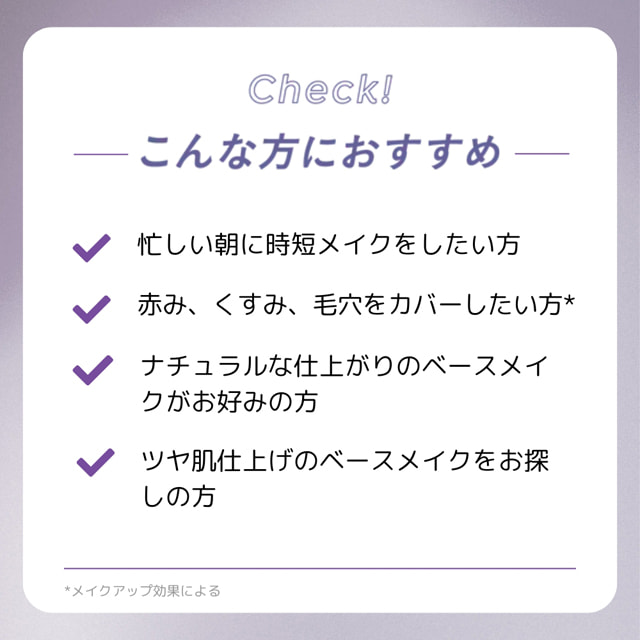 さらにカバー効果が欲しい時は、パウダーファンデーションや仕上げ用のフェイスパウダーを上からお使いください。こんな方におすすめ