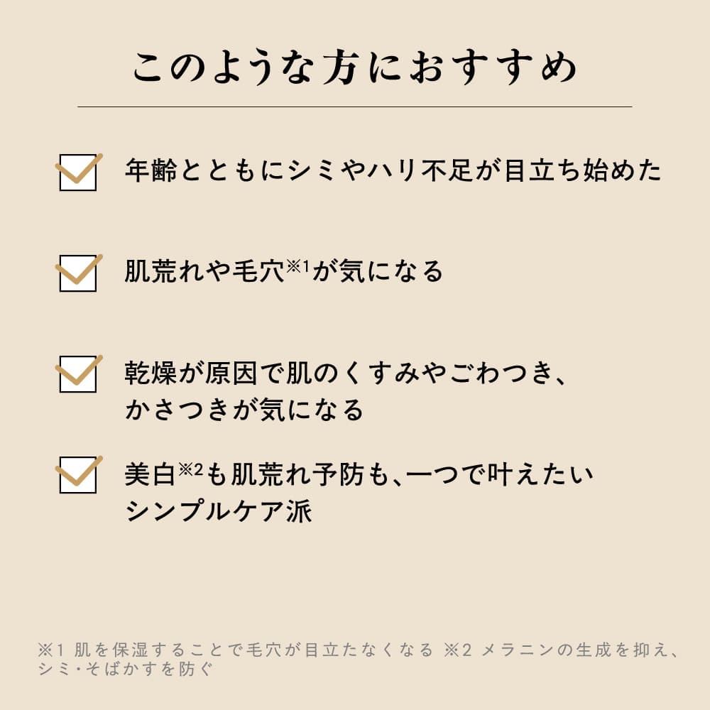 - *1 メラニンの生成を抑え、シミ・そばかすを防ぐ