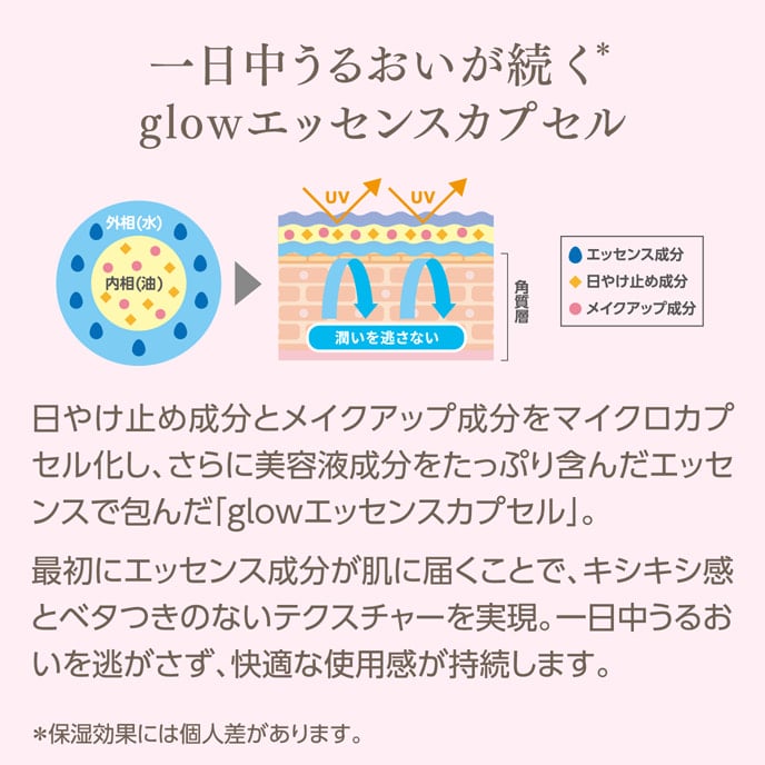 glowシリーズの日焼け止め効果は、商品によって異なります。