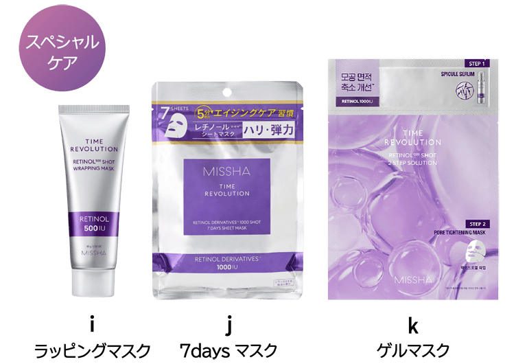 ミシャのレチノール*1製品は低刺激処方*2ですが、レチノール製品を初めて使う方や敏感肌の方、肌状態によっては刺激を感じたり、角質のごわつきが発生する可能性があります。使い始めに腕などでパッチテストを実施して、肌に合うかお試しください。また、肌に刺激を感じた場合は、クリーム等で保湿していただき、肌の状態をチェックしながら、使用頻度と量をご調整ください。